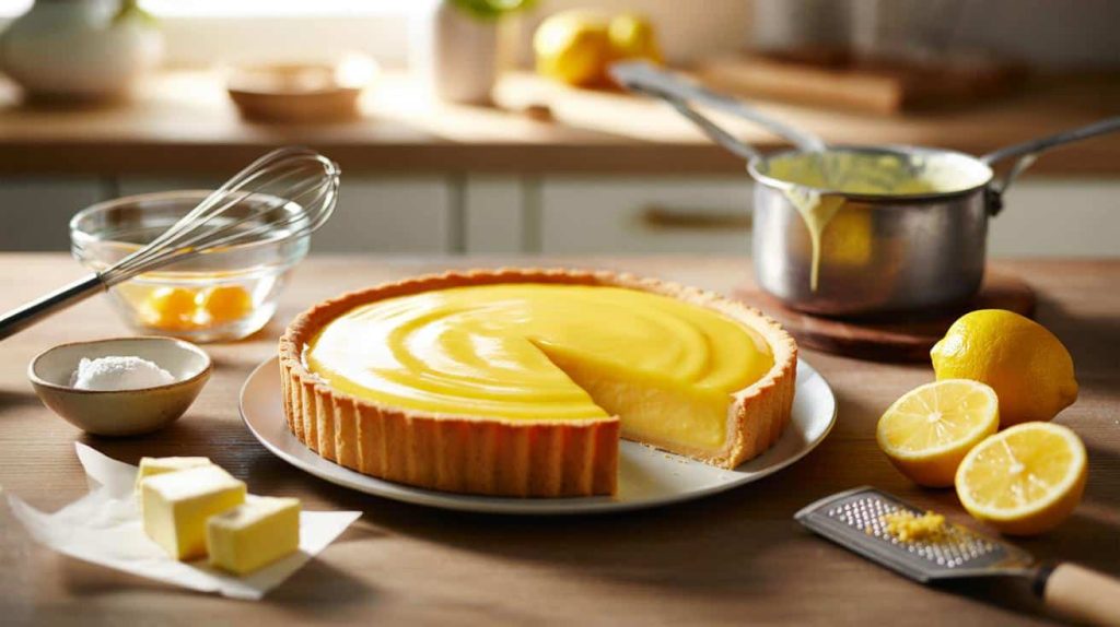 Für eine Portion Zitronencreme, die für eine Tarte oder mehrere Tartelettes reicht, braucht man kaum mehr als fünf Komponenten. Die Qualität des Zitronensafts spielt eine zentrale Rolle – frisch gepresst ist hier keine Floskel, sondern der direkte Unterschied zwischen lebendiger Frische und flacher Süße.