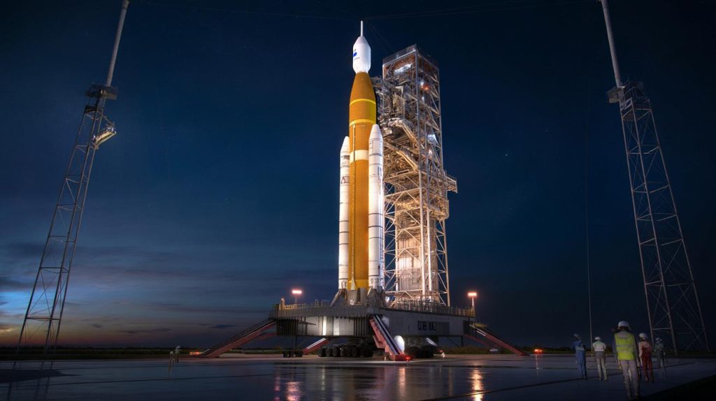 Die Artemis-II-Rakete hat ihr Ziel erreicht. In Florida ist ein Gigant auf die Startrampe 39B des Kennedy Space Centers gerollt